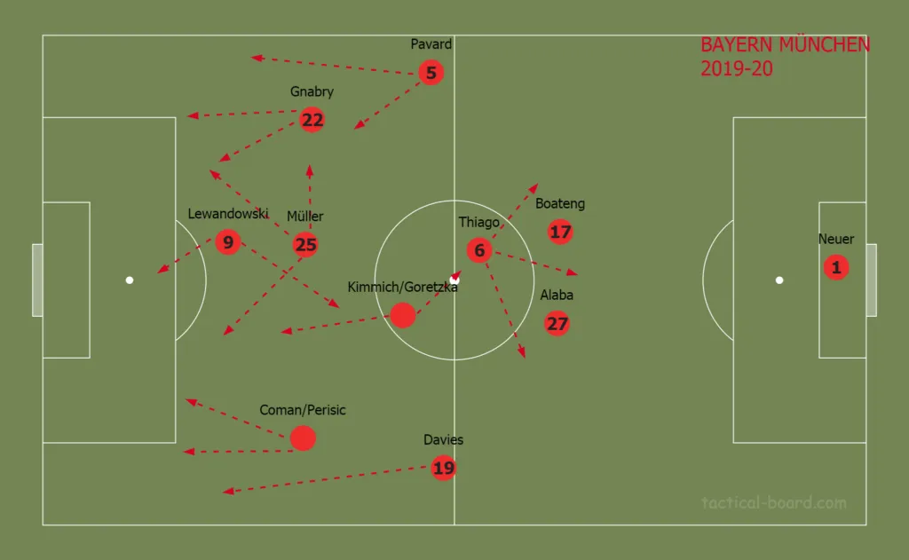 Mindeközben természetesen a csapat taktikailag is gyökeresen megváltozott: a Bayern az egész kontinens talán legagresszívabb letámadását rakta le a pályára, miközben a labdavesztés utáni visszatámadásról sem feledkeztek meg a bajorok, valamint Flick labdabirtoklásban is az elődjénél sokkal világosabb alapokra helyezte a csapat játékát. A játékosokkal is hamar megtalálta közös hangot: a csapat tűzbe ment érte, Müller ismét kivirágzott, Boateng is stabilabb teljesítményt nyújtott, ami elhalkította a távozásáról szóló pletykákat.