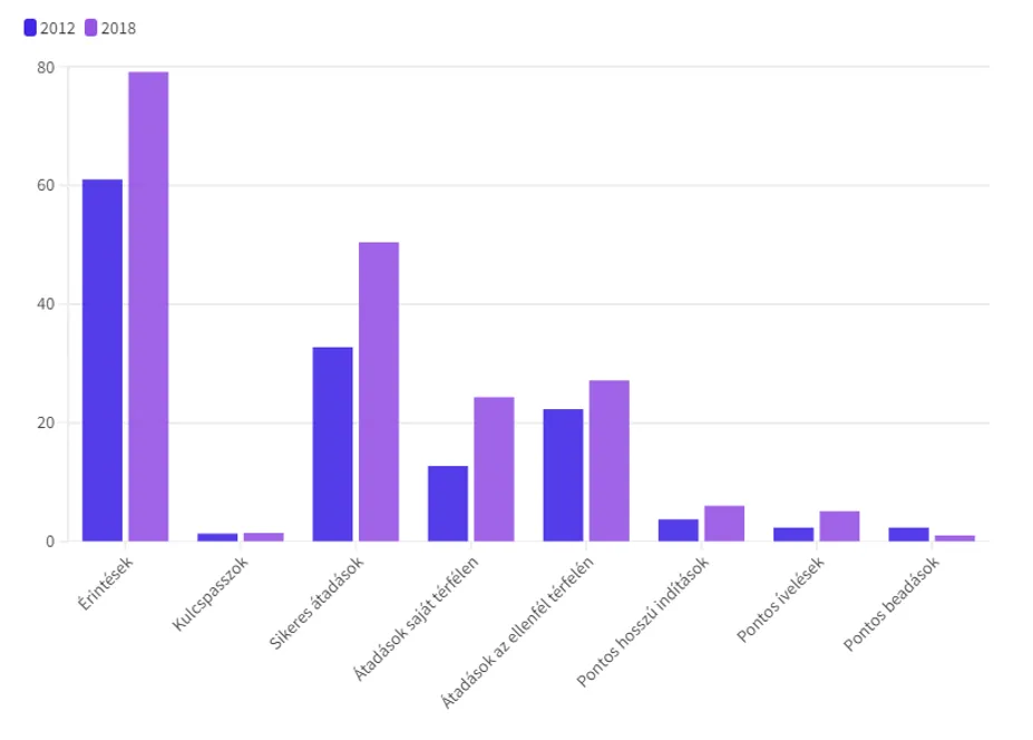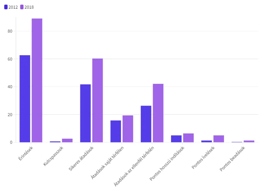 Luka Modric 2012-es és 2018-as passzolási mutatói
