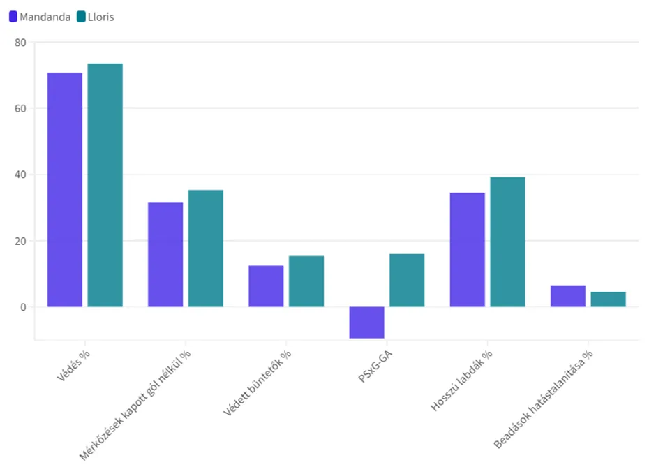 Mandanda és Lloris legfontosabb statisztikai mutatói a karrierjük során
